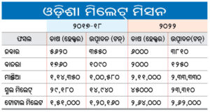 ରିପୋର୍ଟ ଅନୁସାରେ, ପୂରା ବିଶ୍ବରେ ୩୦୦ ପ୍ରକାରର ମିଲେଟ୍ ଉତ୍ପାଦନ ହୁଏ। ସେଥିମଧ୍ୟରୁ ମାତ୍ର ୧୨ପ୍ରକାର ମିଲେଟ୍‌କୁ ଖାଦ୍ୟ ଭାବେ ଗ୍ରହଣ କରାଯାଇଥାଏ। ଜବାର, ବାଜରା ମୁଖ୍ୟ ଏବଂ ସୁଆଁ, ମାଣ୍ଡିଆ, ଖିରା, ଚିନା, କୋଡୁଅ ଆଦି ଲଘୁ ମିଲେଟ୍‌ ଶ୍ରେଣୀର। ଏସିଆ ଓ ଆଫ୍ରିକା ସହ ପୂରା ବିଶ୍ବରେ ୩ରୁ ୪କୋଟି ଟନ୍‌ ମିଲେଟ୍‌ ଉତ୍ପାଦିତ ହୁଏ। ଏଥିରେ ଭାରତର ଅବଦାନ ସିଂହଭାଗ। ତେବେ ଭାରତର ଏ ସଫଳତା ପଛରେ ଓଡ଼ିଶାର ବଡ଼ ହାତ ରହିଛି। ମିଲେଟ୍ ମିସନ ଅନ୍ତର୍ଗତରେ କେବଳ ଓଡ଼ିଶା ୪୦ରୁ ୪୫ ପ୍ରତିଶତ ମିଲେଟ୍‌ ଉତ୍ପାଦନ କରୁଛି। ଅନ୍ୟ ଏକ ଗୁରୁତ୍ବପୂର୍ଣ୍ଣ ପ୍ରସଙ୍ଗ ହେଲା, ମିଲେଟ୍‌ ପାଇଁ ସରକାରଙ୍କ ଦ୍ବାରା ନିର୍ଦ୍ଧାରିତ ସର୍ବନିମ୍ନ ସହାୟକ ମୂଲ୍ୟ (ଏମ୍‌ଏସ୍‌ପି) ଆକର୍ଷଣୀୟ ହୋଇଥିବାରୁ ତାହା ଚାଷୀଙ୍କୁ ସୁହାଉଛି। ଏଥିରେ ହେକ୍ଟର ହିସାବରେ ପ୍ରତି ଚାଷୀଙ୍କୁ ୨୬ହଜାର ୫୦୦ଟଙ୍କା ଦିଆଯାଉଛି।